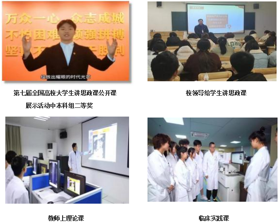 认真落实立德树人根本任务,充分发挥党委政治引领作用, 把握好育人方向,更新育人理念,落实“一岗双责”,推进党建 与教育教学深度融合。以医、教、研、防为统领,教育教学质量 和师资队伍水平为两翼,持续推进“双融双育”工作,一体化推 进学院内涵建设和高质量发展。持续开展课程思政建设,临床基础检验学技术课程入选省级示范课程,临床血液学检验技术、医 学遗传学、诊断学、临床免疫学检验技术入选2024 级校级示范 课程。永葆党员本色,凸显先锋作用,在临床一线、急诊急救、 重点科室等关键岗位设立党员先锋岗,明确岗位职责和标准,要 求党员亮身份、作承诺、 当表率。深化 “党建领航•医路护航” 品牌建设,开展 “六进”义诊活动,各党支部与周边 37 个社区 开展结对帮扶,年均开展各类活动 80 余次,服务群众近万人。