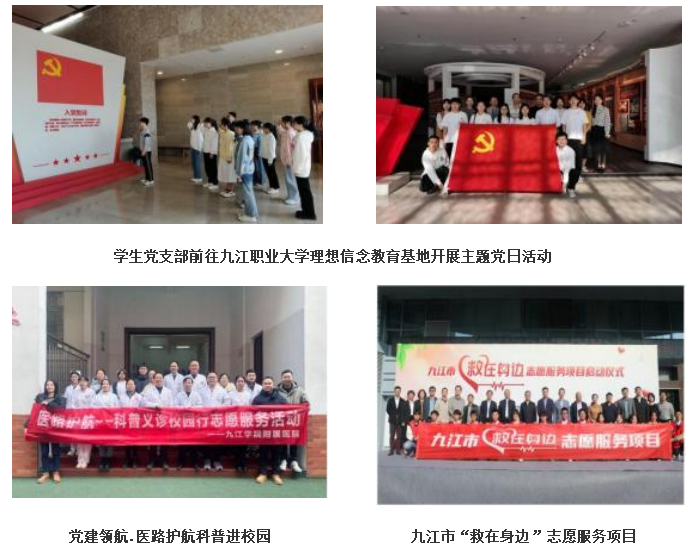 “重实践”理念贯穿于九江学院临床医学院的育人全过程。 九江学院临床医学院注重将党建与实践育人相结合,依托主题团 课、专题研讨、红色实践等多元化载体,组织学生深入学习党的二十届三中全会精神及学校精神内核。学习课堂中,同步深化第 二课堂建设,打造了“暖医行动”“健康公益讲堂”等特色社会 实践项目。在实践中,学生不仅能够运用所学医学知识为大众服 务,还能深刻体会到基层医疗的需求与挑战,从而增强自身的社 会责任感和职业使命感。通过这些实践活动,学生将理论知识与 实际操作相结合,提升专业技能,同时强化服务意识,实现专业 技能与社会责任的深度融合。
