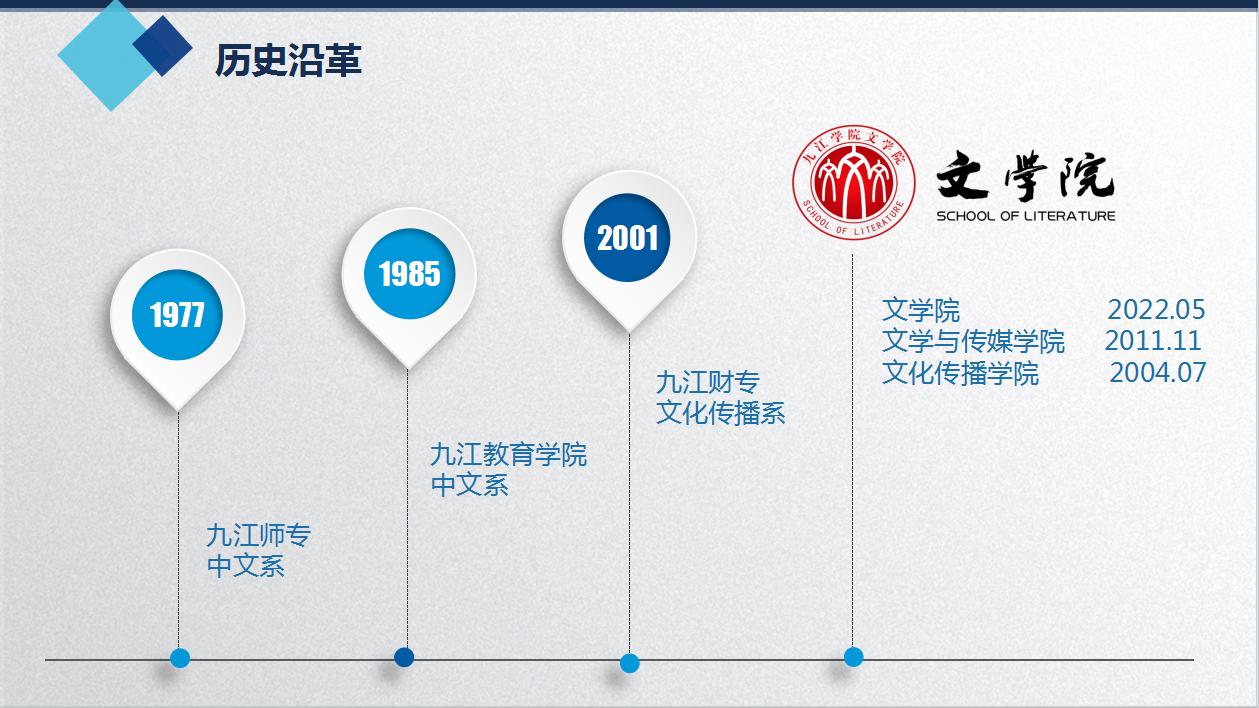 九江学院文学院的历史可追溯至 1977 年创立的九江师范高等专科学校中文系。历经岁月沉淀,如今学院已发展成为师资力量雄厚、学科专业丰富、科研成果丰硕的教学科研单位。学院现有教职工90人,其中,博士33人,教授7人,副教授24人。学院设有汉语言文学、汉语国际教育、网络与新媒体 3 个本科专业,涵盖文学类中国语言文学、新闻传播学两个一级学科。
