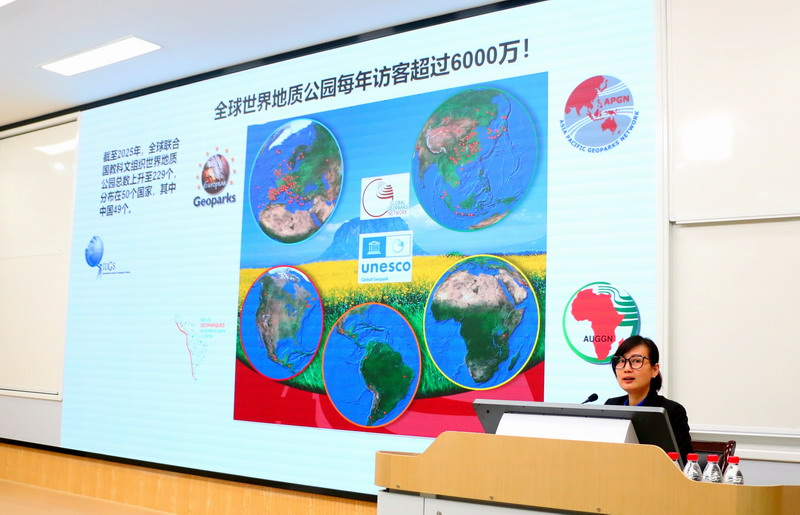 中国国家地质公园网络中心主任任舫以《庐山世界地质公园与我们的未来》为题,深入讲解了庐山冰川地貌的形成及科研价值。庐山作为全球首批世界地质公园之一,其第四纪冰川遗迹、断块山构造地貌等,不仅是珍贵的地质遗迹资源,更是研究地球历史时期气候变化和地质演化的实物资料。同学们听得津津有味,互动环节更是踊跃提问,现场气氛热烈。