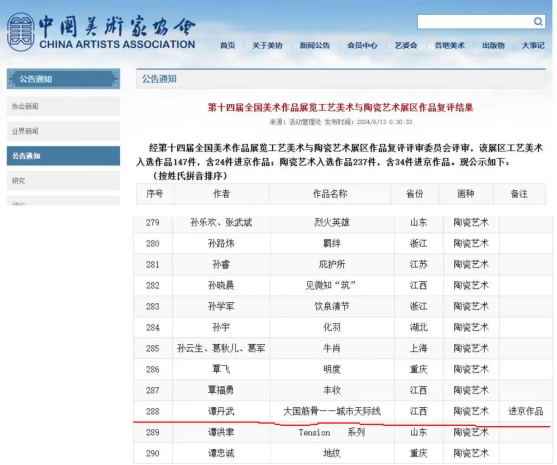 《大国筋骨——城市天际线》成为全国美术作品展览34件进京作品之一,并获获奖提名,这既是对其“传统工艺现代化”“地域艺术国家级表达”学术探索的肯定,也印证了其创作理念与国家文化战略的深度契合,作品的学术思想被纳入中国美术的主流评价体系。