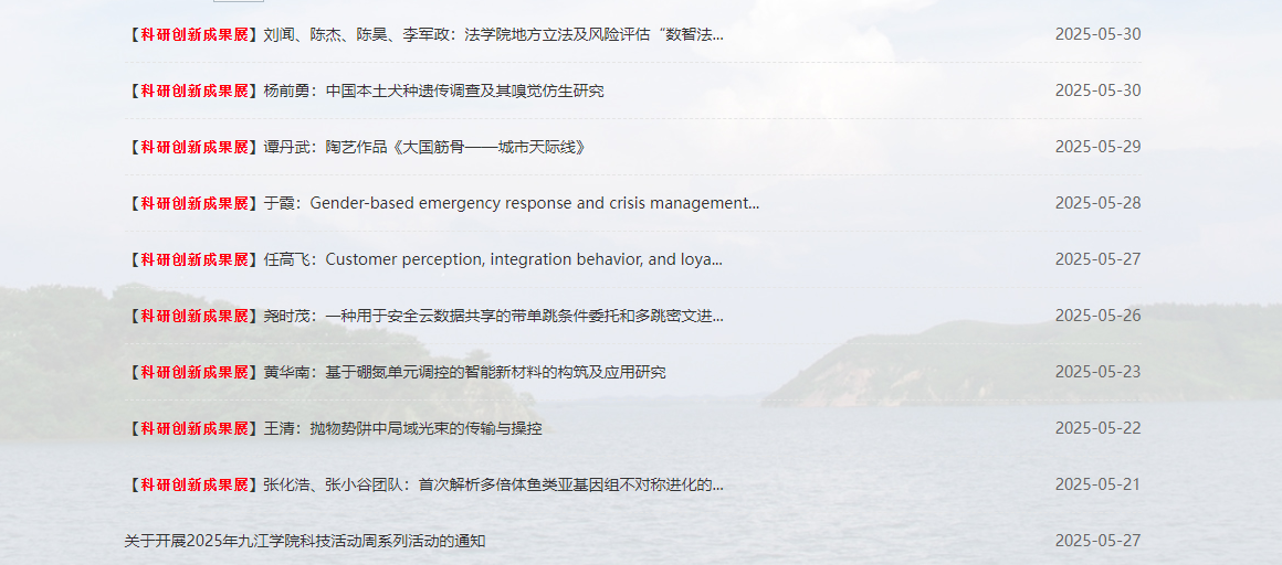 科研创新成果展更是集中展现了九江学院的科研实力与创新成果。线上科研创新成果展自5月21日起在学校校园网持续刊发;线下科研创新成果展于5月27日-30日在厚德楼一楼大厅举行,以2024年度科学研究和社会服务“创新成果奖”团队经验材料为核心,全方位展示了学校在服务国家战略过程中贡献的“九院智慧”。