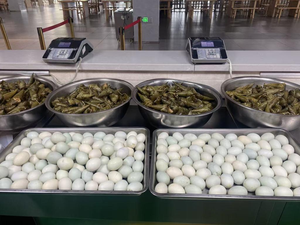 今年端午节,九江学院后勤管理处提前准备了千余份教职工伴手礼。每份礼盒内含手工粽子、鸭蛋与艾草香包,既传递“平安幸福” 的美好寓意,更以食材的温热触感让教职工在忙碌工作中感受家的温馨。而在学生学生专场,两万只粽子与一万枚鸭蛋也在各食堂被有序发放。“没想到在学校也能收到端午礼物!” 一位大一学生捧着粽子感慨,这份惊喜让远离家乡的学子深切体会到校园的温度。发放现场,后勤人员还同步讲解端午习俗,让传统节日文化在互动中自然传承。