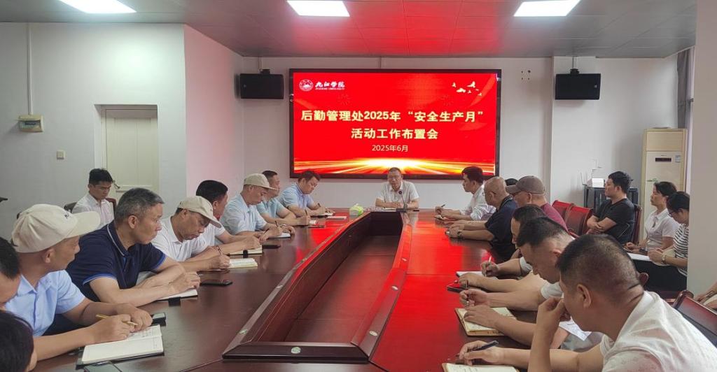 为贯彻落实开展全省教育系统2025年“安全生产月”活动相关文件精神要求,进一步强化校园安全生产全面保障,九江学院后勤管理处迅速行动,于6月12日组织开展了2025年“安全生产月”活动工作部署会及后勤员工安全生产专题学习培训活动,全面拉开“安全生产月”活动帷幕。