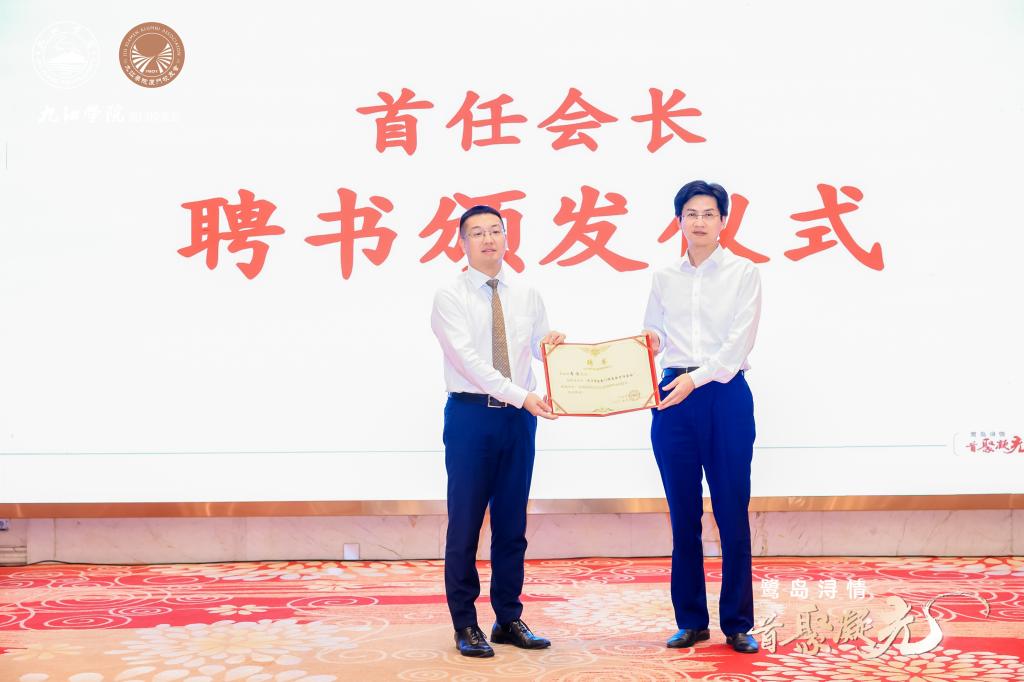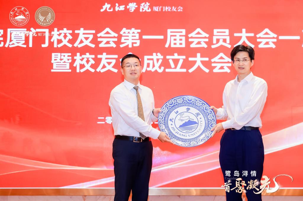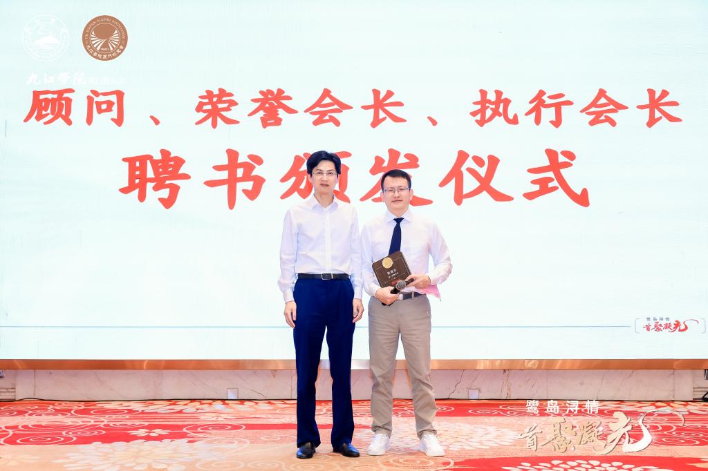 在全体嘉宾与校友们的共同见证下,查振华为首任会长、永利yl23411集团官网2004级国际贸易专业毕业生李波颁发聘书,并共同为厦门校友会及九江学院校友就业创业驿站揭牌;黄怡旋、李波分别为监事长、常务副会长、副会长、秘书长及各理事成员授牌。