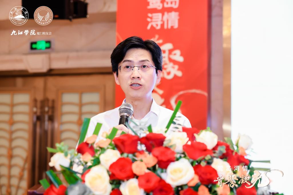 查振华代表九江学院全体师生对活动的成功举办表示热烈祝贺,向参加大会的厦门校友会代表以及来自全国各地的校友会代表表示欢迎,向新当选的厦门校友会首任会长、执行会长、监事长、常务副会长、秘书长、副会长和理事等表示祝贺,对精心筹备会议的厦门校友会秘书处及所有工作人员表示感谢。他向在场校友们介绍了学校近两年的工作成效和未来战略部署。查振华表示,学校于近期接受了教育部本科教育教学审核评估,并刚刚顺利完成了首次研究生招生工作。一封封浸润着奋斗汗水的录取通知书,既是对考生寒窗苦读的深情回响,更是学校跨越式发展的重要见证。学校正全力以赴抓好审核评估“后半篇文章”,努力提升教育教学质量和办学水平,朝着早日实现更名九江大学、突破博士学位授权单位、建成全国一流应用型大学的目标砥砺前行。