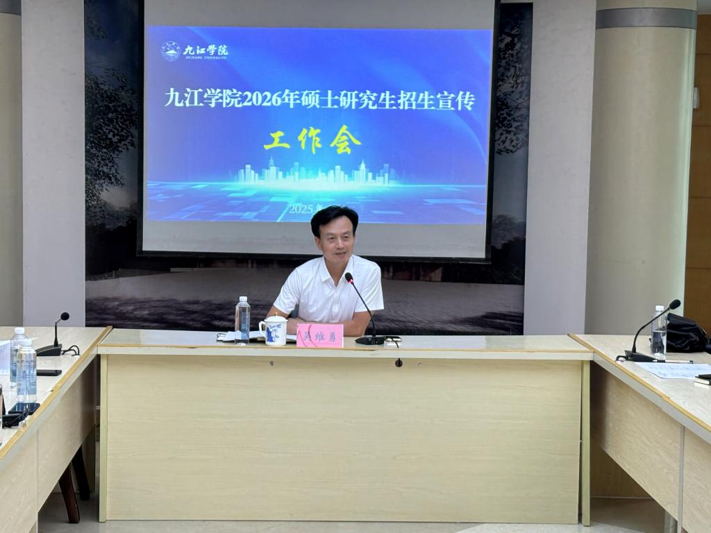 7月2日,永利yl23411集团官网召开2026年硕士研究生招生宣传工作部署会,全面启动新一年度的研招宣传工作。校党委委员、副校长吴维勇出席会议并讲话。宣传部、发展规划与研究生处及相关二级学院负责人参加会议。会议旨在统筹安排2026年硕士研究生招生宣传工作,确保研究生招生工作有序推进,进一步提升生源质量,吸引更多优秀学子报考九江学院。