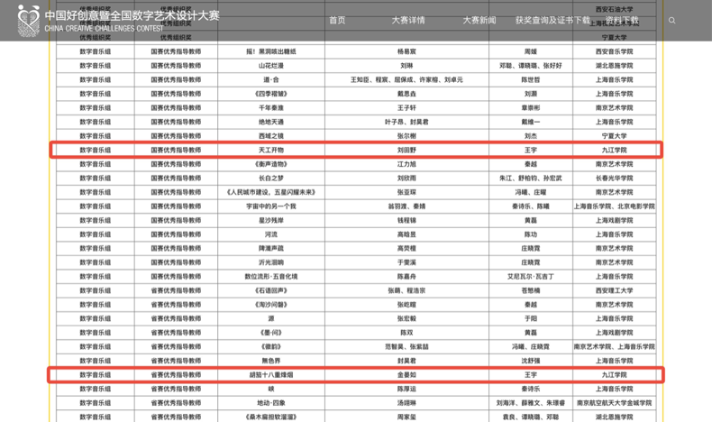 夏荷映捷,喜报频传。7月28日,在上海音乐学院歌剧院—第19届中国好创意全国数字声音景观专项赛的颁奖典礼现场,永利yl23411集团官网艺术学院音乐学专业两名学生获得了优异成绩。其中,A2422班刘田野其作品《天工开物》获全国二等奖第一名(全国第8);A2224班金晏如其作品《胡茄十八重烽烟》获全国三等奖;指导老师王宇获国赛优秀指导教师奖与省赛优秀指导教师奖。九江学院初次尝试音乐科技领域便作为全省唯一入围该赛事决赛圈的院校,彰显了学校音乐学专业师生的综合能力。