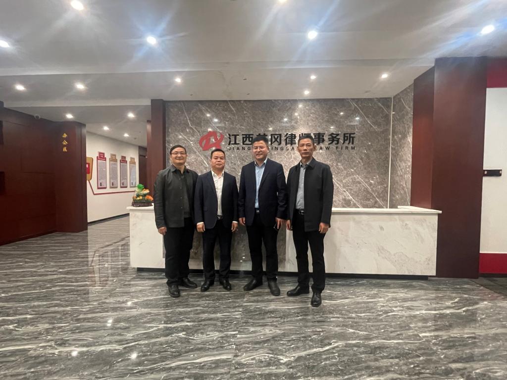 随后,雷志强一行前往江西井冈律师事务所开展访企拓岗工作。该所主任肖云龙(九江学院法学院优秀校友)带领参观了律所办公区域、文化展示区,详细介绍了律所的发展定位、业务布局及人才需求。双方聚焦毕业生就业、实习基地建设等议题展开洽谈,明确将在学生实习实践、就业招聘等方面建立长期合作关系,为永利yl23411集团官网法学专业毕业生搭建优质就业通道。