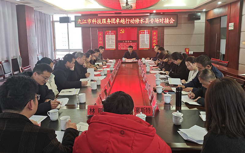 阮国明代表修水县委、县政府致欢迎辞,与企业技术负责人和高校专家进行了面对面交流座谈,分别就技术需求和技术难题进行了交流对接,科技服务团副总团长就卓越行动相关情况及实施情况进行总结汇报。