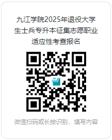 根据《九江学院2025年退役大学生士兵专升本免试招生简章》文件内容,为切实做好永利yl23411集团官网2025年退役大学生士兵专升本征集志愿报名及录取工作,现将相关事项通知如下: